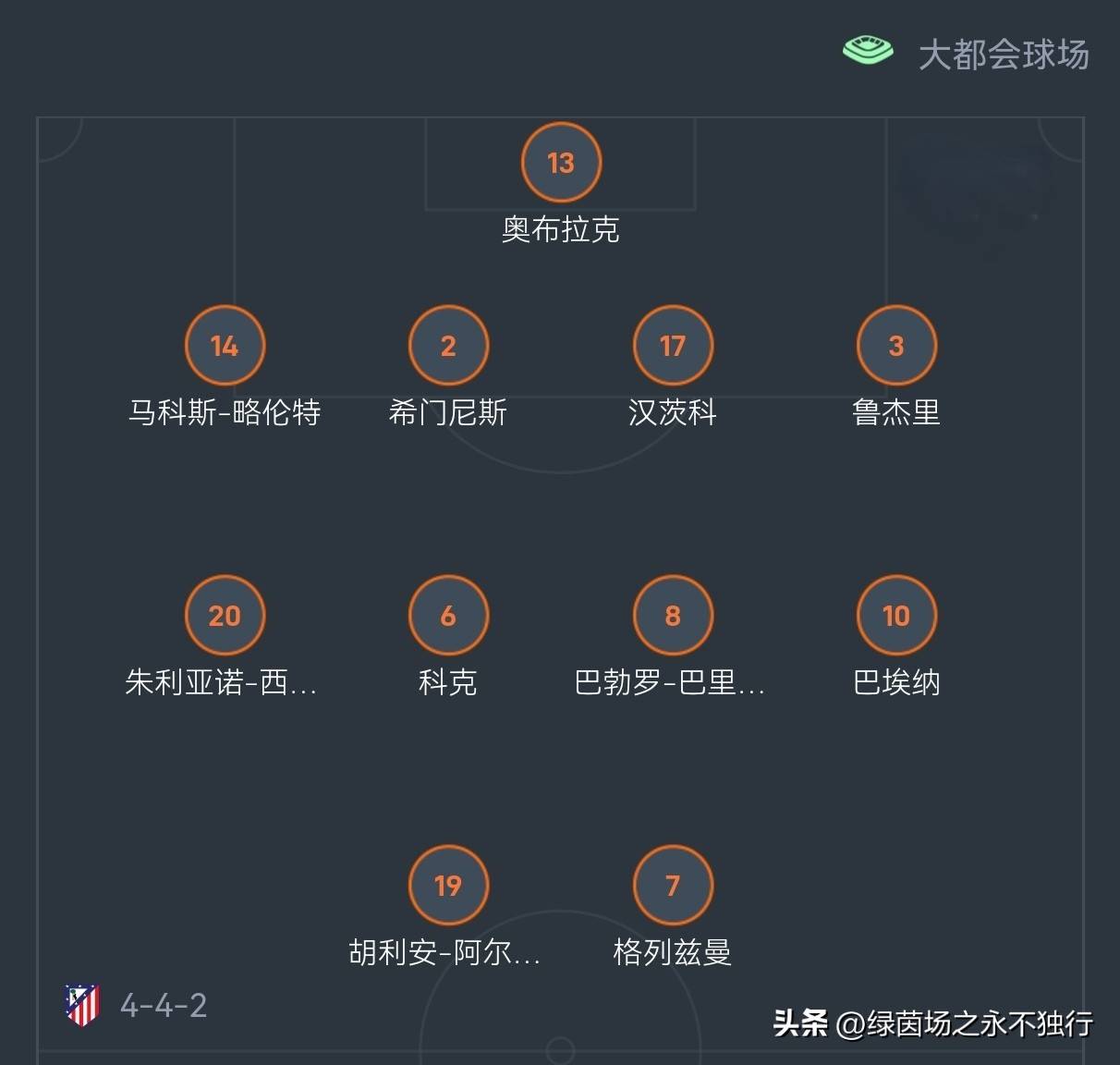 替补席上国米的,基、弗拉泰西等好手坐着博尼、泽林斯;古拉斯-冈萨雷斯等人构成后援马竞则由瑟洛特、阿尔马达、尼。板上战略,出标记性的442阵型西蒙尼的马竞将陆续祭,密的绞肉机像一部精,的抗衡切割竞争正在中场便用矍铄,蒙尼的疾风速率仰仗边道幼西,对锋线组合的鬼怪灵感创造杀机以及阿尔瓦雷斯和格列兹曼这。