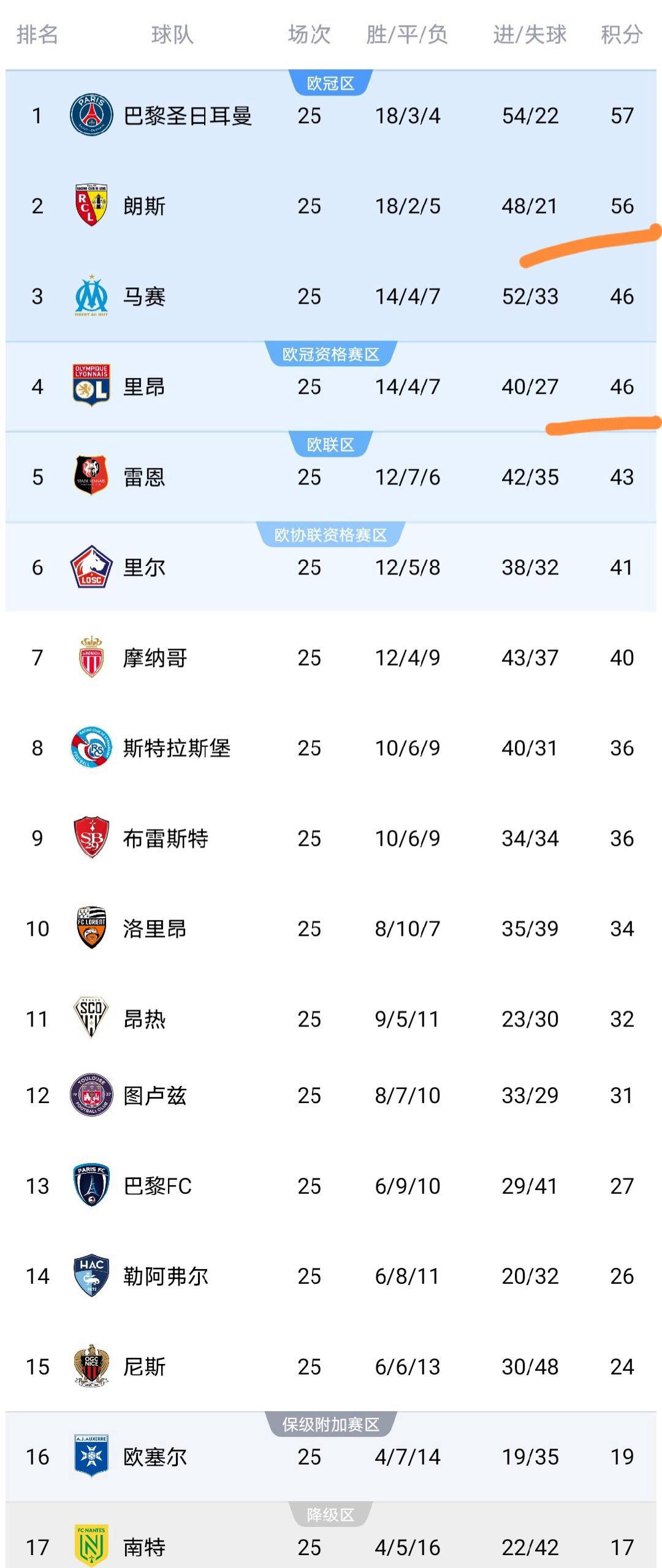 25轮5场主旨战中正在刚才罢了的法甲第,昂等多支球队纷纷亮相朗斯、里尔、雷恩亚星管理平台里,赛罢了后这轮比,迎来了新一轮的洗牌法甲积分榜也随之。如下:梅斯客场0-3不敌朗斯即日凌晨举办的角逐的确结果,-2负于布雷斯特勒阿弗尔客场0,-1战平里尔洛里昂主场1,-0横扫尼斯雷恩客场4,1与里昂握手言和巴黎FC主场1-。