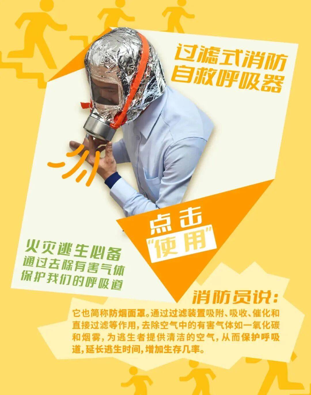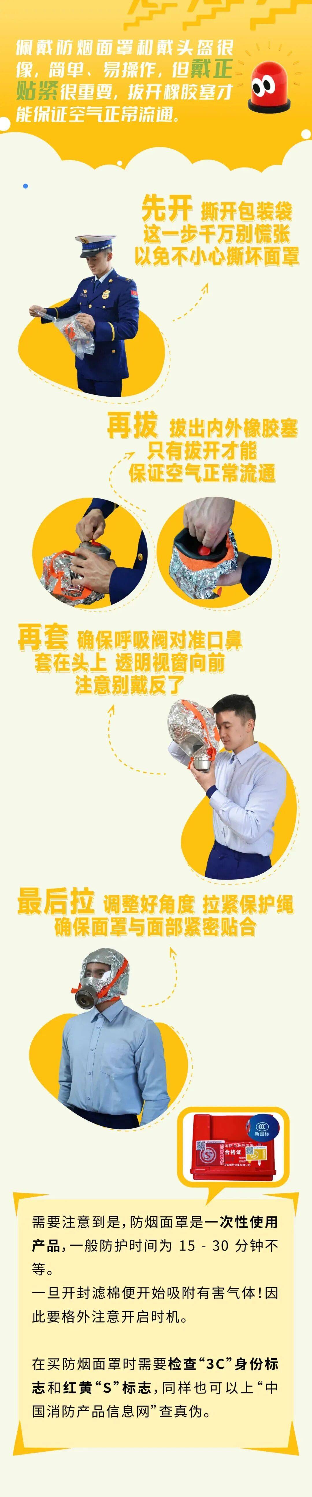 灾荒中火警等,更致命的威吓浓烟是比火焰,毒无益气体含有大方有,能导致昏厥乃至弃世吸入后短功夫内就可。的防烟面罩应急包中,启迪“安闲呼吸通道”能为咱们正在浓烟情况中,逃生设备是枢纽的。