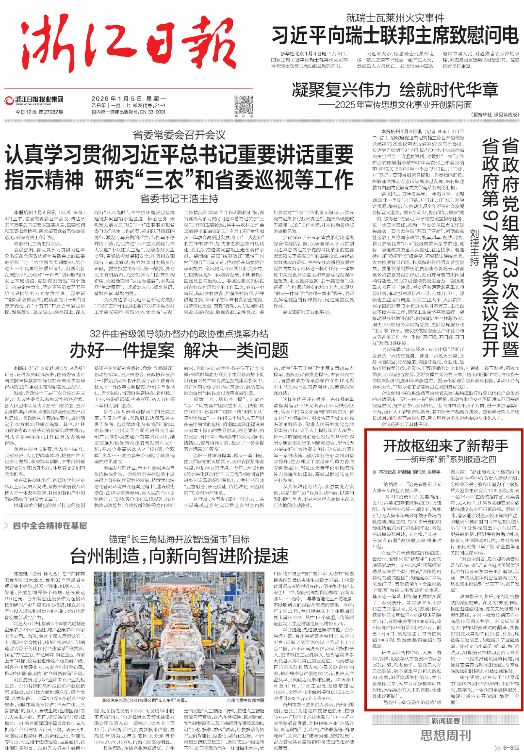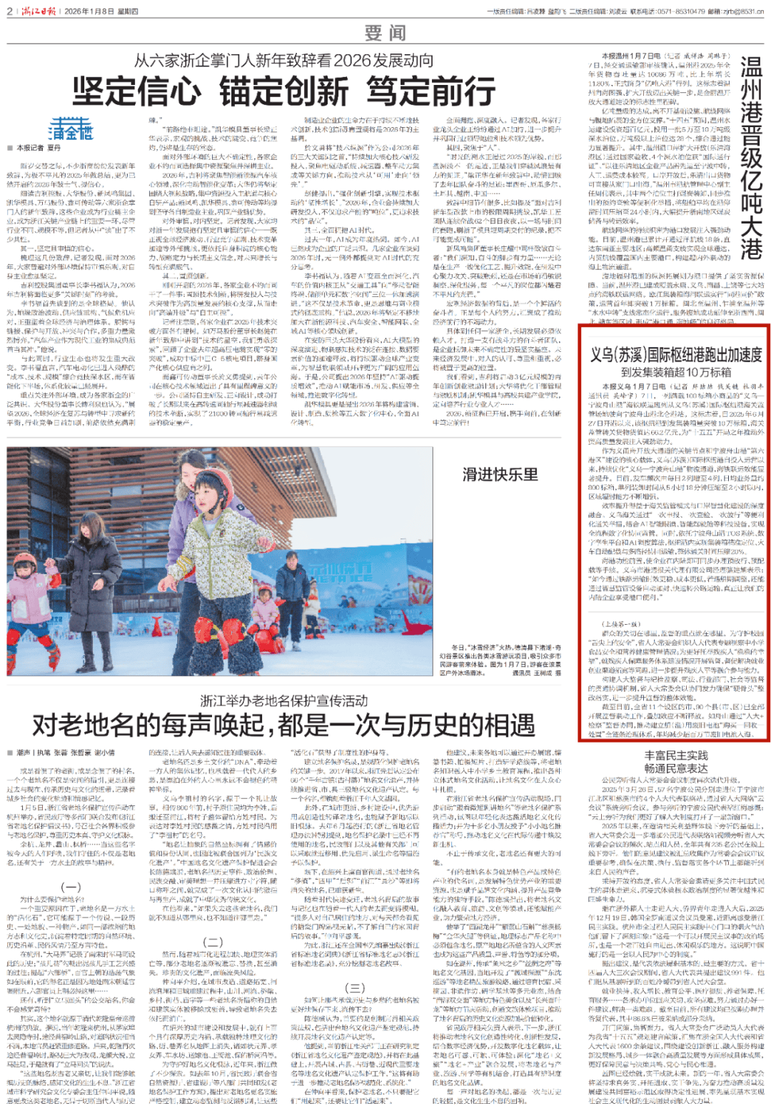 —新年探“新”系列报道之四 合心义乌(苏溪)国际合键1月5日 《浙江日报》头版刊发 怒放合键来了新帮忙—港