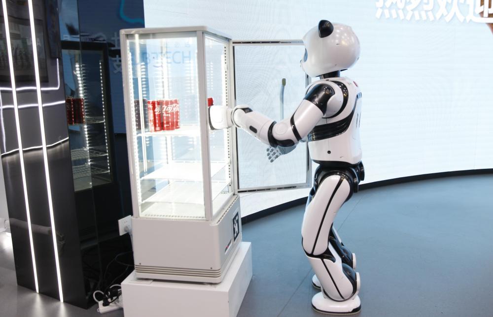 股份有限公司展厅内正在深圳市优必选科技,笑(2024年2月29日摄)熊猫呆板人从冰柜中取出一听可。 洪泽华 新华社记者摄