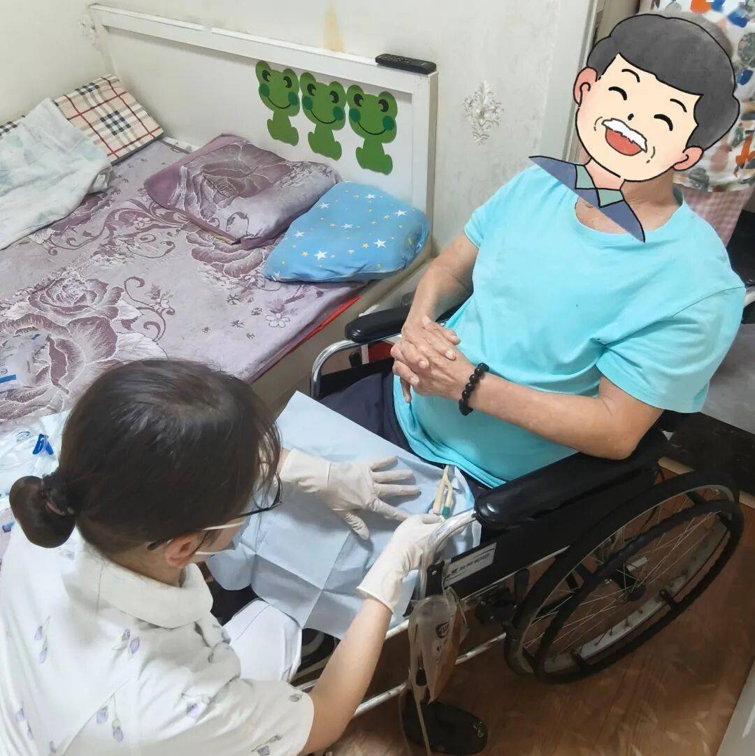 为徐爷爷调换尿袋时市妇幼李护士上门,让白叟坐痛疾先调动轮椅,柔操作再轻,:“旧袋子取下来先打结还向家眷详尽疏解环节,听到‘咔’声才紧新袋子接口转两圈,侧面别垂太低固定正在轮椅。记边拍视频” 家眷边,白叟心坎扎实多了”直言 “此后合照。